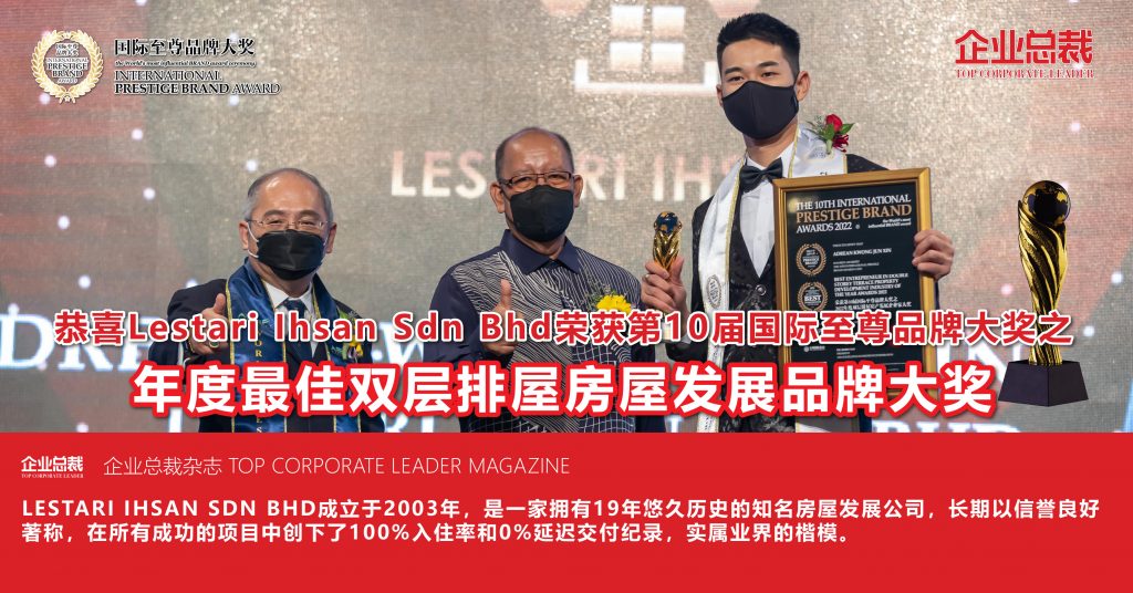 LESTARI IHSAN SDN BHD 成立于2003 年,是一家拥有 19 年悠久历史的知名房屋发展公司,以发展土著住宅项目为主,在巴生谷土著社区占有重要位置。LESTARI IHSAN 长期以信誉良好著称,在所有成功的项目中创下了 100 % 入住率和 0 % 延迟交付纪录,实属业界的楷模,因而荣获 IPBA国际至尊品牌大奖颁发 2022 年度最佳双层排屋房屋发展品牌大奖,以表扬其多年卓越成就。 LESTARI IHSAN 从一个位于 Hulu Langat 的小型住宅房屋项目起步,在创办人 Kwong Siew Huat(龚岫发)以及现任执行董事 Adrean Kwong Jun Xin(龚俊心)的带领下,公司至今已完成了9 个房屋兴建项目,创建超过 1000 所房屋。公司提供精心设计的住宅和场所,帮助创建积极、可持续发展的社区。