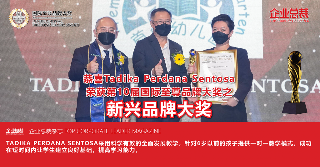 位于砂拉越古晋的首创幼儿园 TADIKA PERDANA SENTOSA 于 2019 年 12 月成立,开始营运两个月后即面临百年一遇的疫情,然而凭借科学有效的全面发展教学,以及对学前教育的热忱,快速累积了学生和家长们的信任,至今累积学生人数逾百人。因此,继 2021 年荣获 PEEAM 私立教育企业家奖之后,首创幼儿园又获得了 IPBA 国际至尊品牌大奖的肯定。
