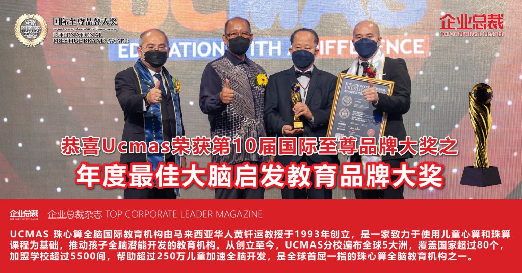 UCMAS不仅获得所有主流大学的加盟,同时也获得国内外多个奖项殊荣,表彰在教育界所作出的巨大贡献,并且也荣获多个记录大全,包括大马最大珠心算比赛盛会,大马最大珠心算特许教育机构以及第一家荣获ISO国际品质管理证书的珠心算学院。
