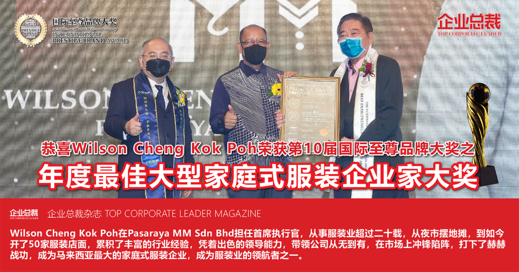 Wilson Cheng Kok Poh在Pasaraya MM Sdn Bhd担任首席执行官,从事服装业超过二十载,从夜市摆地摊,到如今开了50家服装店面,累积了丰富的行业经验,凭着出色的领导能力,带领公司从无到有,在市场上冲锋陷阵,打下了赫赫战功,成为马来西亚最大的家庭式服装企业,成为服装业的领航者之一。