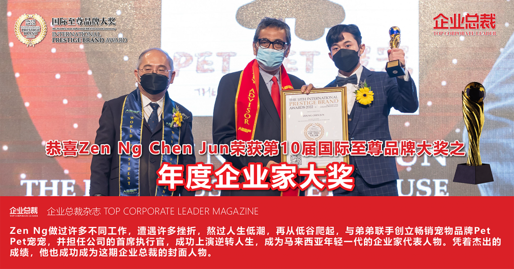 “成功路上,从来都不是一帆风顺的”。Zen Ng做过许多不同工作,遭遇许多挫折,熬过人生低潮,再从低谷爬起,与弟弟联手创立畅销宠物品牌Pet Pet宠宠,并担任公司的首席执行官,成功上演逆转人生,成为马来西亚年轻一代的企业家代表人物。