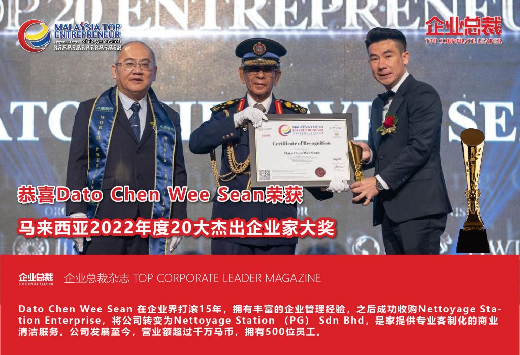 挑战不可怕,可怕的是畏惧挑战。Dato Chen Wee Sean在企业界打滚15年,拥有广泛的人脉资源,其不畏惧改变和热爱挑战的人生哲学,让他成功在2018年成功收购Nettoyage Station Enterprise。凭着他多年企业管理的经验,成功带领该公司从寥寥数人,发展至今天拥有超过500位员工,营业额超过千万马币的大型企业,是马来西亚著名企业家人物之一。