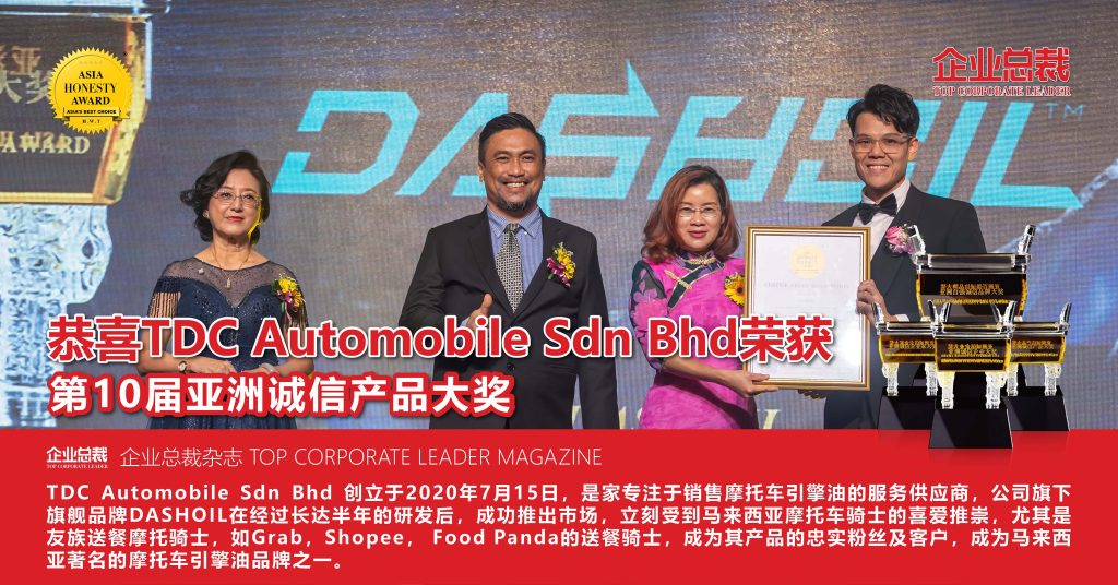 TDC Automobile Sdn Bhd 创立于2020年7月15日,是家专注于销售摩托车引擎油的服务供应商,公司旗下旗舰品牌DASHOIL在经过长达半年的研发后,成功推出市场,立刻受到马来西亚摩托车骑士的喜爱推崇,尤其是友族送餐摩托骑士,如Grab,Shopee, Food Panda的送餐骑士,成为其产品的忠实粉丝及客户,成为马来西亚著名的摩托车引擎油品牌之一。