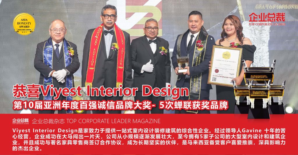 经过领导人Gavine 十年的苦心经营,企业成功在大马闯出一片天,公司从小规模逐渐发展壮大,至今拥有5家子公司的大型室内设计和建筑企业,并且成功与著名家具零售商签订合作协议,成为长期坚实的伙伴,是马来西亚备受客户喜爱推崇,深具影响力的杰出企业。其卓越成就和影响力,更获得国际权威奖项亚洲诚信大奖,颁发亚洲年度百强诚信品牌大奖,同时也持续多年蝉联该奖项。