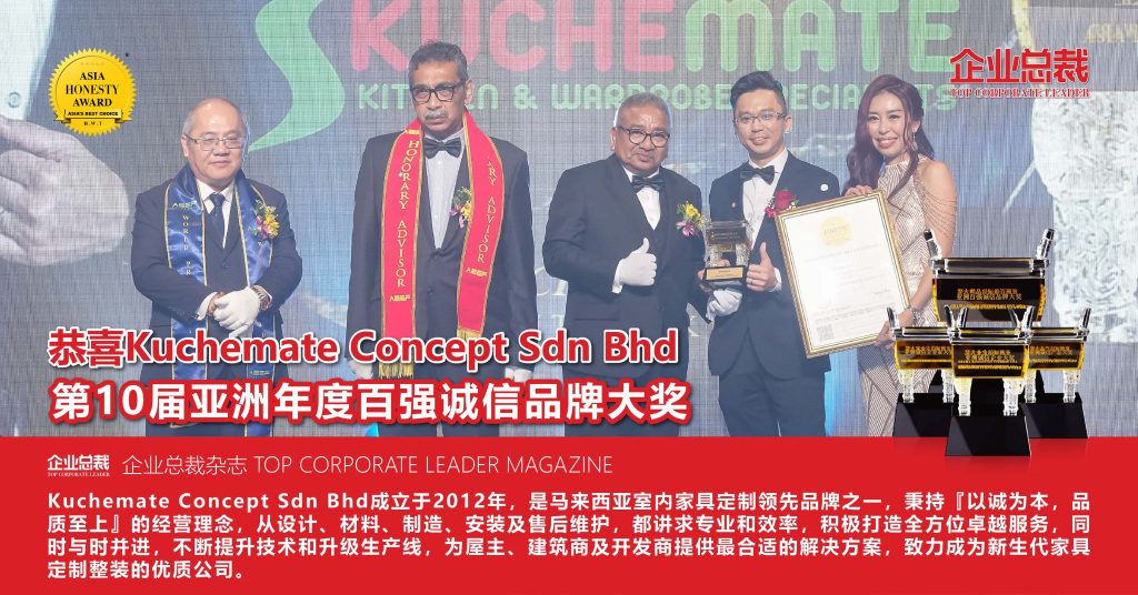 Kuchemate Concept Sdn Bhd成立于2012年,是马来西亚室内家具定制领先品牌之一,专门从事厨柜、系统衣柜与家具定制服务,集合了空间规划与定制家具设计为一体的一站式企业。自成立以来,秉持『以诚为本,品质至上』的经营理念,从设计、材料、制造、安装及售后维护,都讲求专业和效率,积极打造全方位卓越服务,同时与时并进,不断提升技术和升级生产线,为屋主、建筑商及开发商提供最合适的解决方案,致力成为新生代家具定制整装的优质公司。