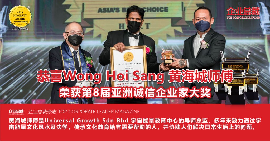 Wong Hoi Sang 黄海城师傅是Universal Growth Sdn Bhd 宇宙能量教育中心的导师总监,多年来致力通过宇宙能量文化风水及法学,传承文化教育给有需要帮助的人,并协助人们解决日常生活上的问题。另外,黄公师傅也身兼多职,同时也是马来西亚关丹云梦山创办人,暹茅天山派创办人,香港泽仁医疗国际集团风水顾问以及中国广州熹耀文化有限公司风水顾问等等。