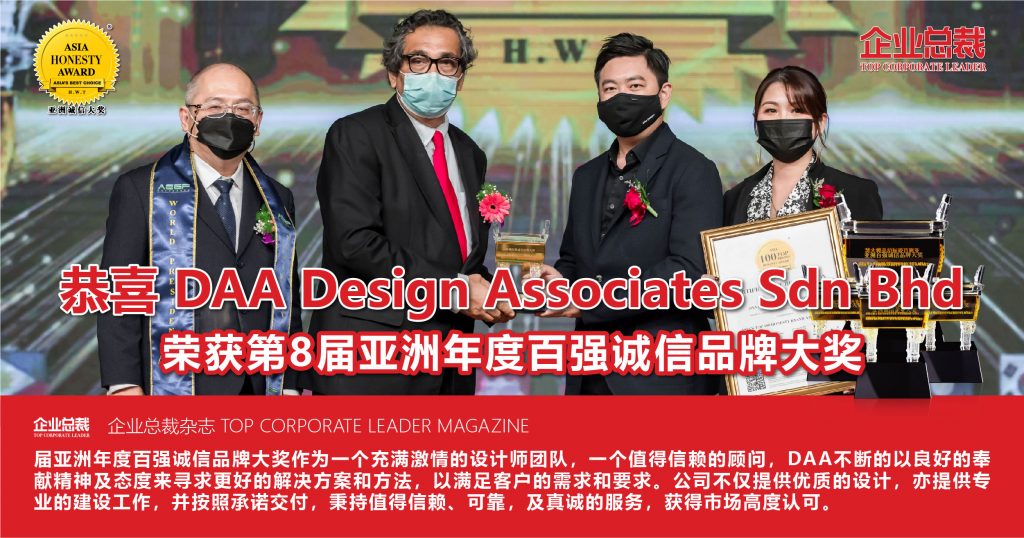 DAA多年来得到客户及合作单位的支持下,完成多个商业及住宅项目,并荣获业界的认同,自2017年,在多个大赛中获得奖项或提名。未来,Ken表示会持续扩展业务,壮大团队,更加完善系统,成为马来西亚最具信赖及可靠的室内设计企业。