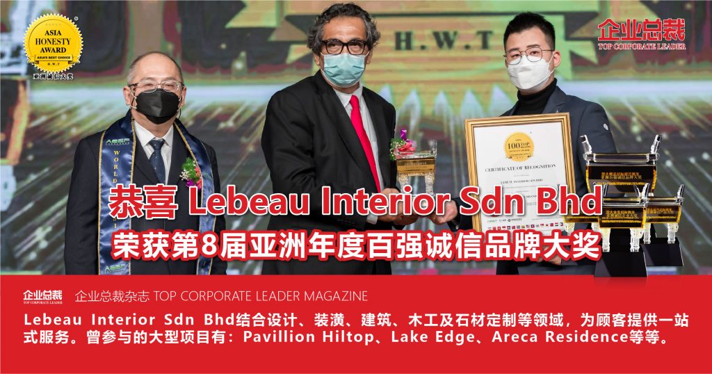 Lebeau Interior Design室内设计公司成立于2018年,短短几年内业绩将近千万令吉,并斩获亚洲诚信大奖、马来西杰出企业家大奖等多个重要奖项。