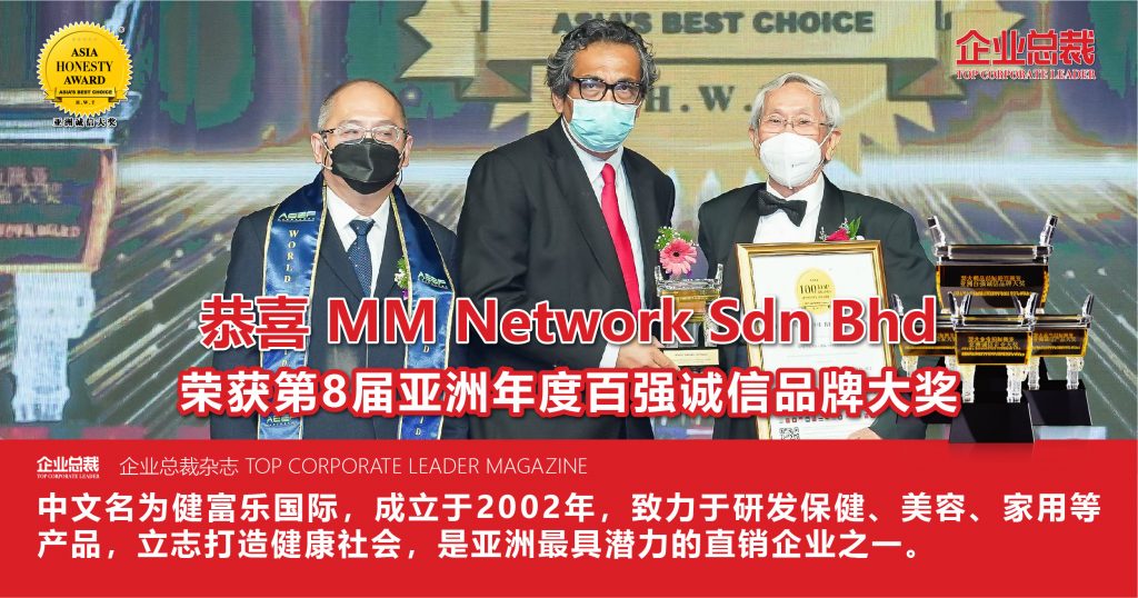 MM NETWORK 健富乐国际执行总监蒋永青(Thompson Chong)资历相当深厚,曾担任中国上市集团副总裁、中国药食同源生命科学院专家委员会委员兼教授、中国长青商学院院长、中国老年健康大学首席健康讲师等。他也是享誉中外的中医食疗营养师,曾多次受邀担任国内外各大节目—— NT7 电视台「活力加油站」、AI FM 电台「爱生活」、新加坡「健康我最大」等主讲人或嘉宾。他做过上千场培训课程,学员遍布马来西亚、中国、新加坡、香港、汶莱、台湾等地。