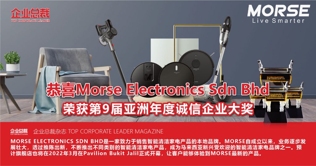 展望未来,MORSE将持续提升产品和服务的品质,提高品牌的能见度,深耕本地市场,打造本地最佳智能家电品牌,为客户创造更大的价值。同时MORSE也会开始往O2O的方向前进,投入线下市场,预计旗舰店也将在2022年3月在Pavilion Bukit Jalil正式开幕,让客户能够体验到MORSE最新的产品。