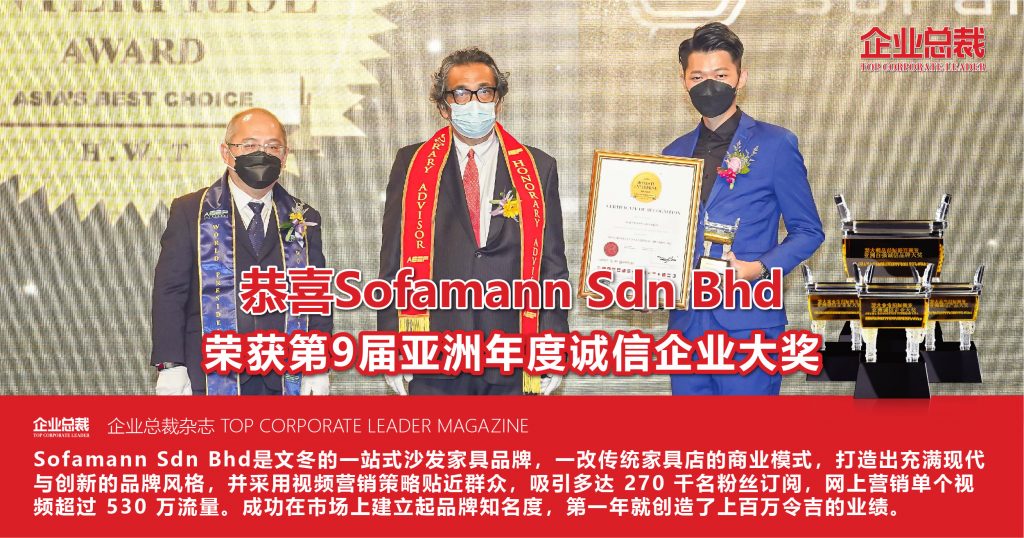 2019年,创立于文冬的一站式沙发家具品牌——SOFAMANN,凭借敏锐的商业触觉,一改传统家具店的商业模式,打造出充满现代与创新的品牌风格,并采用视频营销策略贴近群众,吸引了多达 270 千名粉丝订阅,网上营销单个视频超过 530 万流量,成功在市场上建立起品牌知名度,第一年就创造了上百万令吉的业绩。