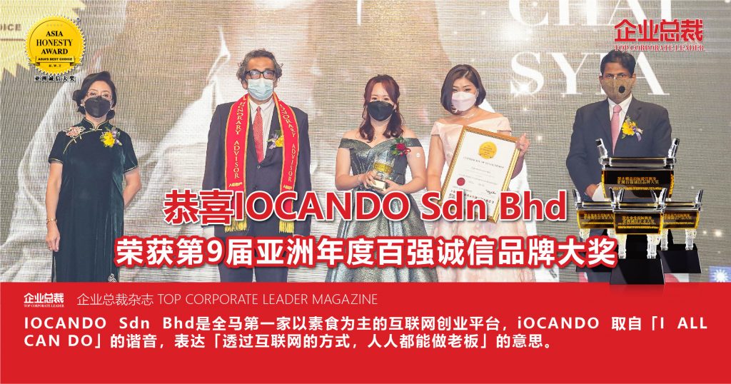 iOCANDO 创办于 2019 年,是全马第一家以素食为主的互联网创业平台。iOCANDO 取自「I ALL CAN DO」的谐音,蕴含「透过互联网的方式,人人都能做老板」的深意。iOCANDO 将微商企业化,在竞争激烈的情况下,成功在2 年内扩展为 500 人规模的公司,攻占马来西亚、新加坡、印尼、越南等多国市场,第 1 年业绩就超过了 400万令吉。