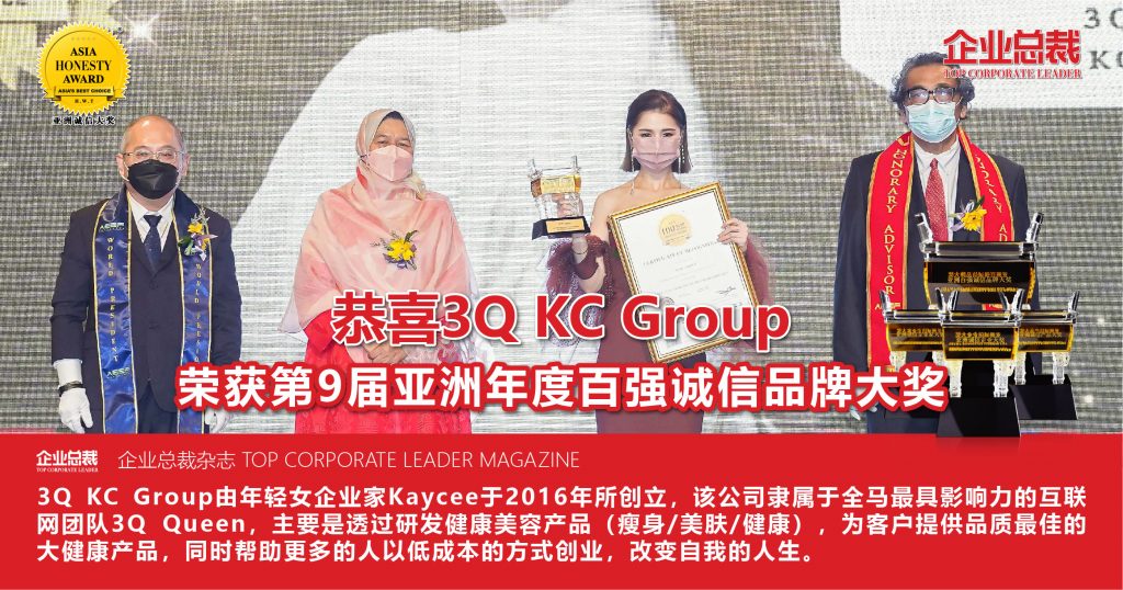 3Q KC Group由年轻女企业家Kaycee于2016年所创立,该公司隶属于全马最具影响力的互联网团队3Q Queen,主要是透过研发健康美容产品(瘦身/美肤/健康),为客户提供品质最佳的大健康产品,同时帮助更多的人以低成本的方式创业,改变自我的人生。