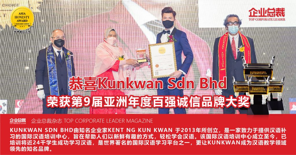 KUNKWAN SDN BHD由知名企业家KENT NG KUN KWAN 于2013年所创立,是一家致力于提供汉语补习的国际汉语培训中心,旨在帮助人们以新鲜有趣的方式,轻松学会汉语。该国际汉语培训中心成立至今,已培训将近24千学生成功学习汉语,是世界著名的国际汉语学习平台之一,更让KUNKWAN成为汉语教学领域领先的知名品牌。。公司也从最初的20名员工,扩展至近百名员工。