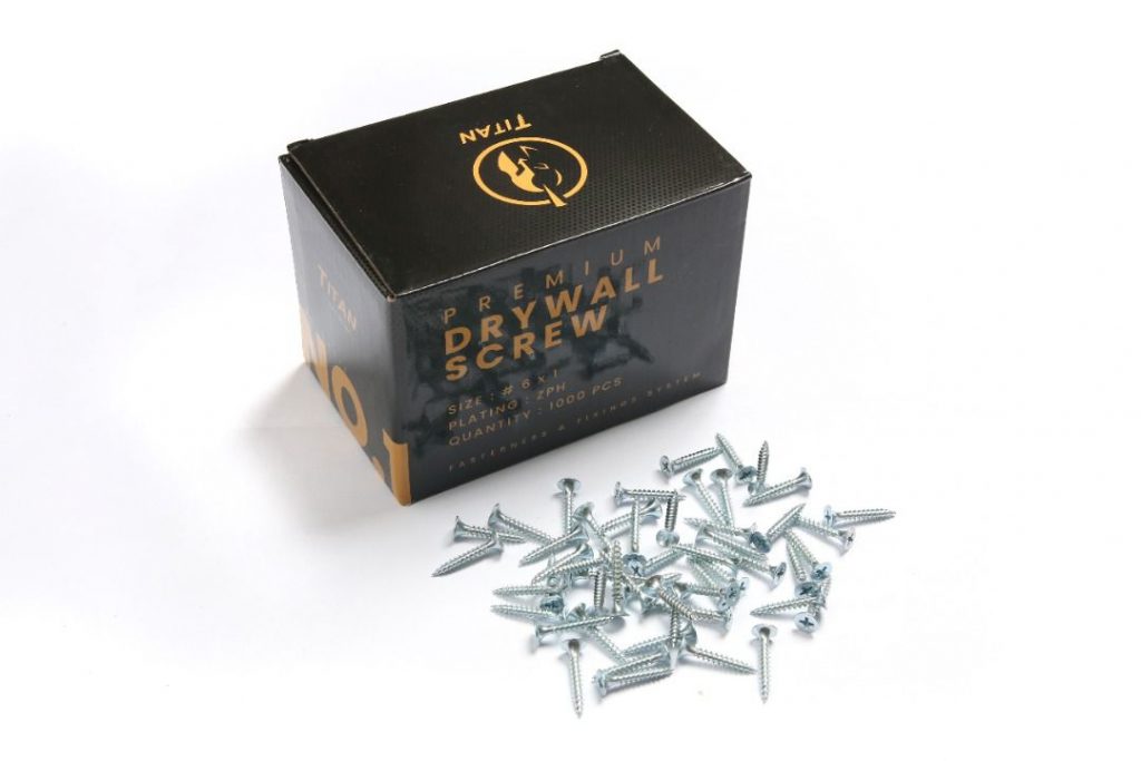 TITAN PREMIUM DRYWALL SCREW 石膏板螺丝是历经 3 年研发制成的独家商品,拥有齿形螺纹和喇叭形头部,齿形螺纹比普通螺丝的螺纹来得深,不容易从石膏板上脱落;喇叭头则有助于螺丝固定在原位,而不会一直撕裂外纸层。TITAN 石膏板螺丝拥有良好的锋利度,更易穿透硬质材料。此外,市面上的螺丝最常见的问题就是容易生锈,TITAN 石膏板螺丝加强外层镀上的蓝白锌,能够有效减低生锈和腐蚀的风险。