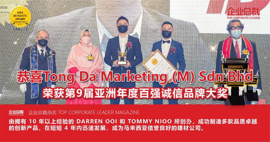 DARREN OOI 与友人 TOMMY NIOO 于 2017 年共同创办同达贸易有限公司(TONG DA MARKETING SDN BHD),凭借在建材行业累积超过 10 年的经验和知识,成功制造多款品质卓越的创新产品,让同达在短短 4 年内迅速发展,成为马来西亚信誉良好的建材公司。