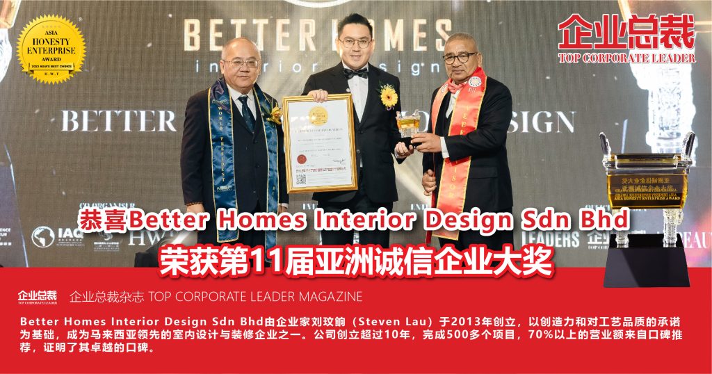 Better Homes Interior Design Sdn Bhd由企业家刘玟餉(Steven Lau)于2013年创立,以创造力和对工艺品质的承诺为基础,成为马来西亚领先的室内设计与装修企业之一。公司秉持视觉美观、安全性、实用性及经济性为基础,致力于打造美感和功能性兼具的居住空间。公司创立超过10年,完成500多个项目,70%以上的营业额来自口碑推荐,证明了其卓越的口碑。总部设于吉打州Sg Petani,服务范围广泛,覆盖北马、吉打和槟城等地。为住宅、商业办公室、店铺和餐厅提供一站式室内设计和装修解决方案。