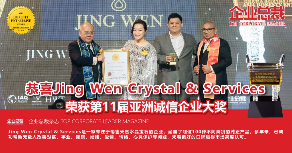 Jing Wen Crystal & Services成立于2020年,是一家专注于销售天然水晶宝石的企业。多年来,以诚信第一、品质至上的理念为基础,为广大寻求帮助的客户提供专业水晶和宝石知识,推荐合适的产品,教导正确的使用方法,以助力其在生活各个方面获得实际的益处。与此同时,公司还致力于为能量治疗师、冥想师、风水师、静坐师等专业人士供应优质产品,共同推动行业进步和发展。至今,已成功帮助无数人改善财富、事业、健康、婚姻、爱情、情绪、心灵保护等问题,凭着良好的口碑赢得市场高度认可。