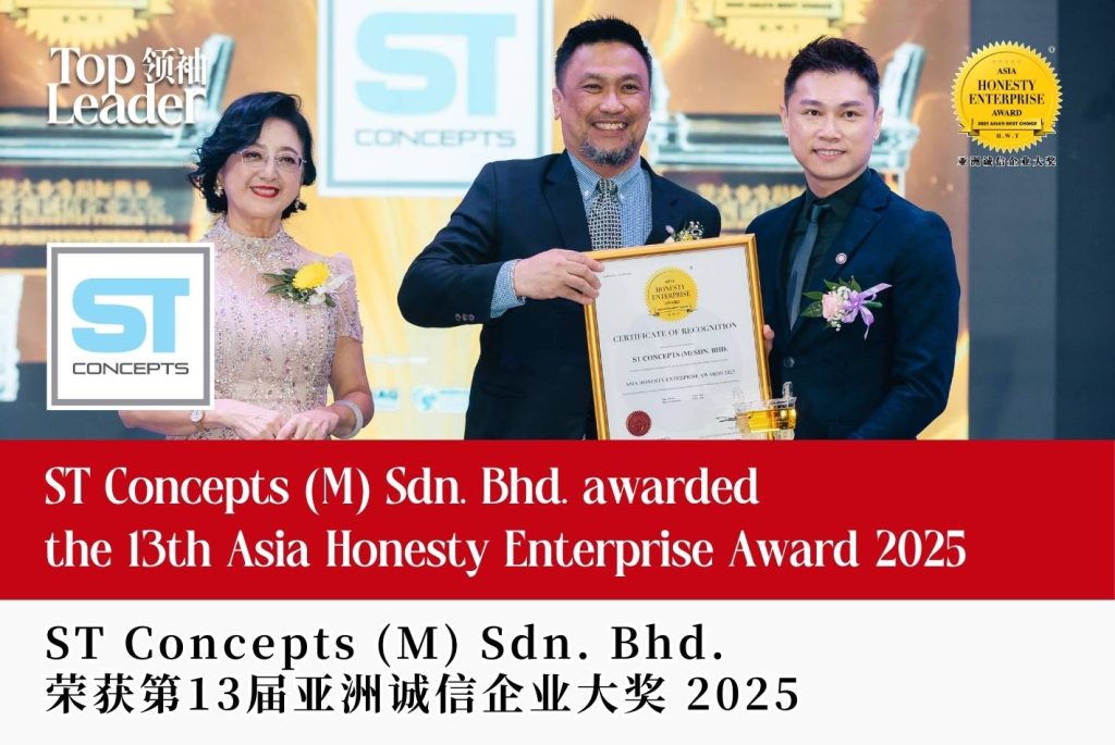 Winning the Asia Honesty Enterprise Award is a new milestone—further cementing ST Concepts (M) Sdn. Bhd. reputation as a trusted, ethical, and socially responsible leader in Asia’s creative design sector.