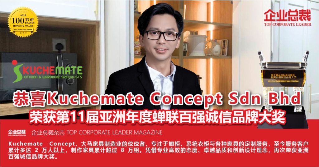 Kuchemate Concept Sdn Bhd 再次荣获亚洲百强诚信品牌大奖,作为马来西亚家具定制领域的佼佼者,Kuchemate 的成功不仅源于其深厚的行業底蘊和不懈追求卓越的精神,更体现在其一流的服务和不断创新的设计理念。不仅如此,Kuchemate 还不断升级技术和生产线,以为客户提供最合适的解决方案。