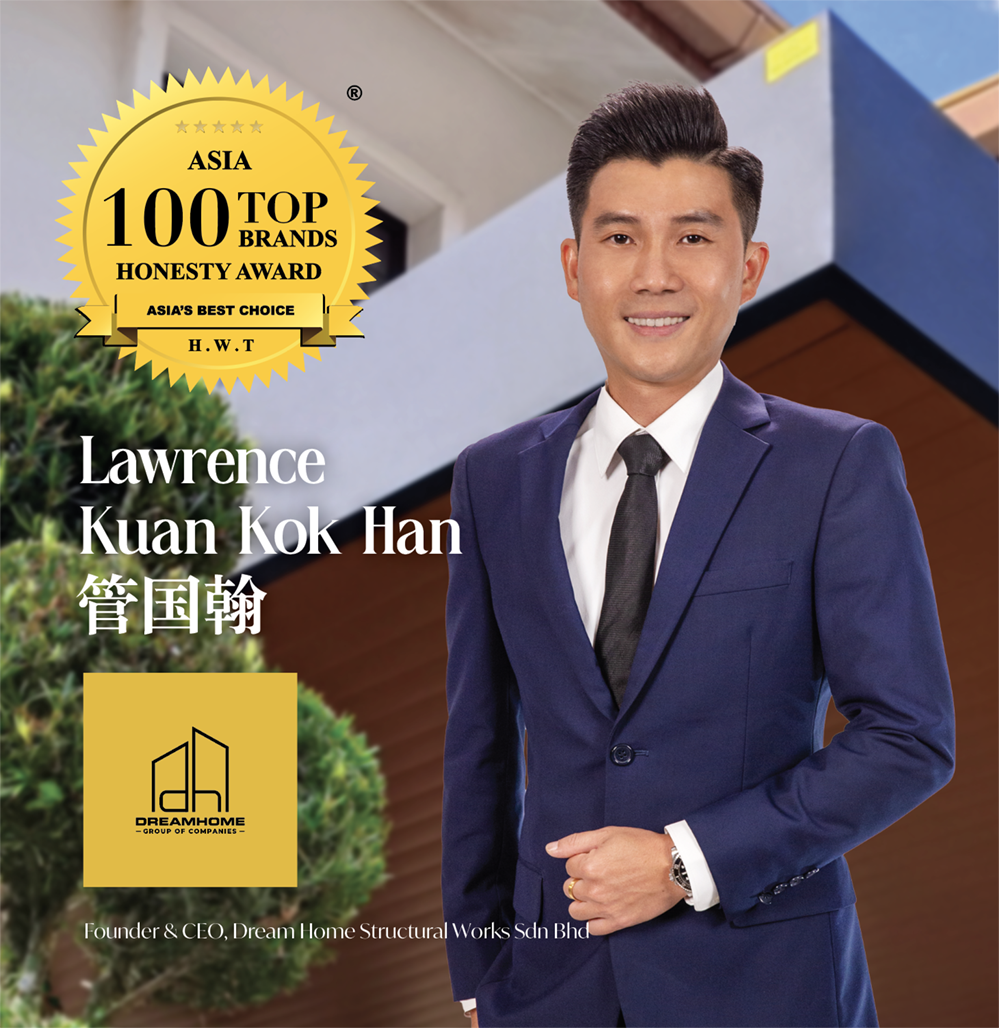 Lawrence管国翰,Dream Home Structural Works Sdn Bhd 创办人在近年迅速崛起。虽然创业不到两年,但他早已在商场上身经百战。早期做过多份职业,练就一身业务技能。23岁入职某上市集团,在一年内创下了卓越的销售成绩,获得全亚洲最佳销售员的殊荣。2015年,他换到新公司,不仅将濒临倒闭的公司扭亏为盈,更将公司发展为行业龙头。2023年,他成立了自己的第一家公司,不到半年就创下了最快施工纪录,立即在业界打响名堂。