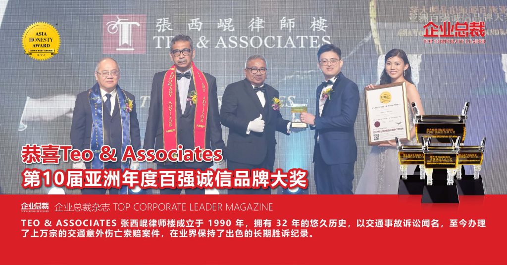 TEO & ASSOCIATES 经年累月建立了一张从警方、医院到法庭的广阔的人脉网,熟悉整个程序与相关部门的运作,在此领域保持了出色的长期胜诉纪录,在业界赢得了良好的口碑和社会声誉。多年来,TEO & ASSOCIATES 帮助众多客户在意外受伤后获得了客户未曾预想到的赔偿金额。