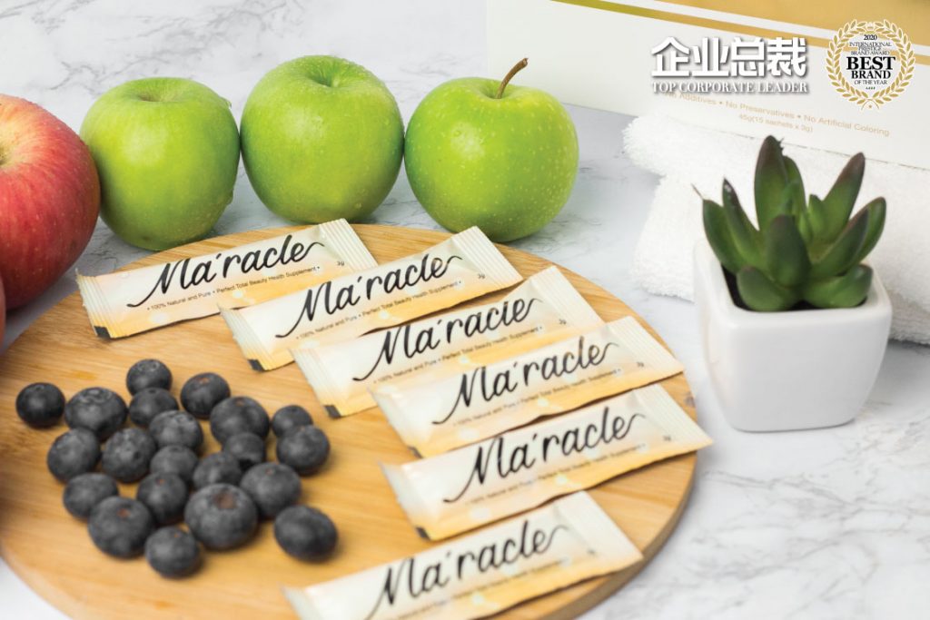 Ma’racle是一款根据大众需求并获得GMP、HALAL、HACCP、MESTI等多项认证,100%纯天然,含有13种天然成分,胶原蛋白肽、苹果干细胞、谷胱甘肽、丝肽、百香果、番石榴、玻尿酸、绿茶提取物、叶黄素、辅酶Q10、神经酰胺、葡萄干细胞,及巴西莓,采用独家技术达到超小分子让人体容易吸收。该产品不含人造荷尔蒙,无防腐剂、无副作用等安全保证的产品,男女老少、孕妇均可饮用。