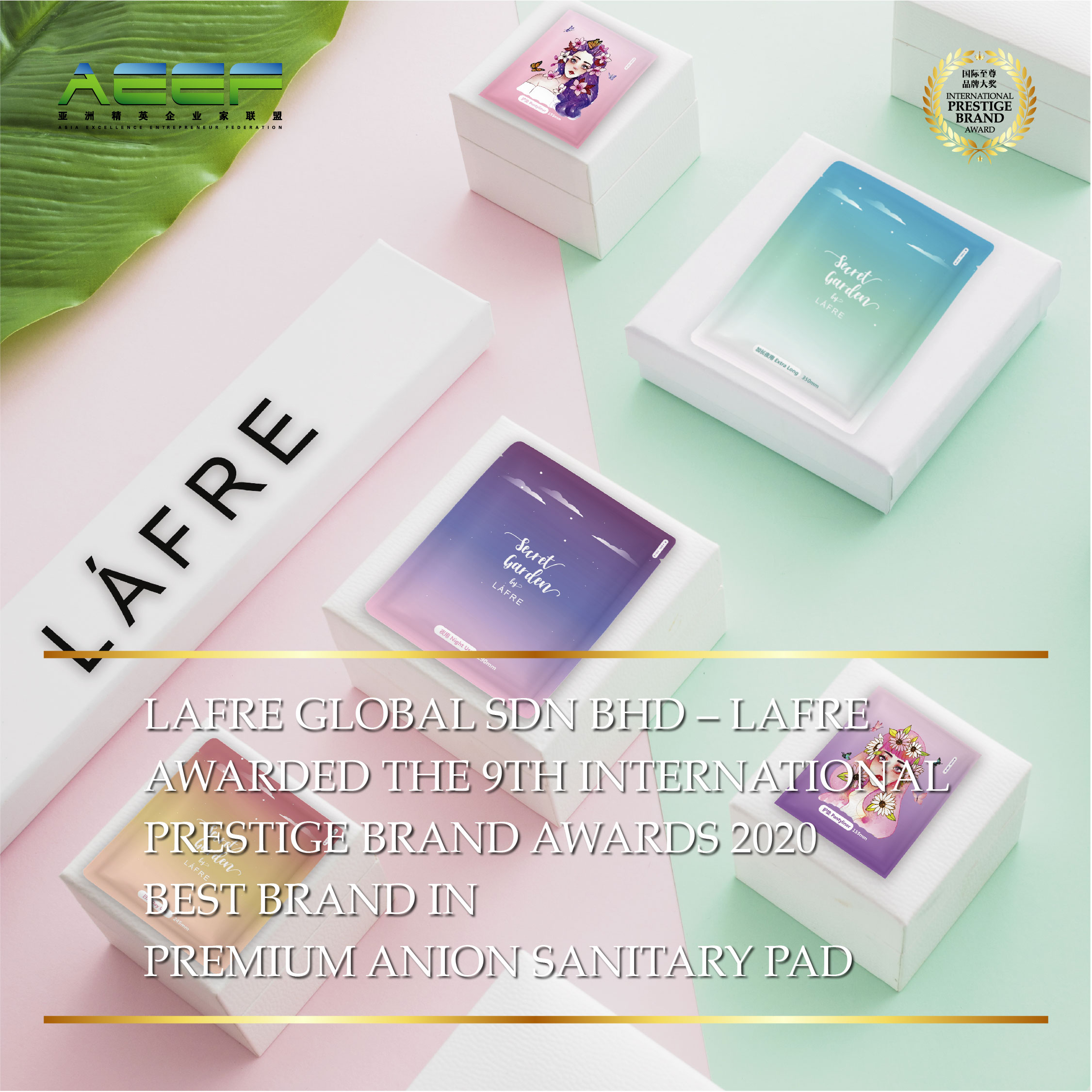 LÁFRE Secret Garden是由马来西亚网红Jeff & Inthira及Edward Kong精心研发创办的品牌,秉持着“让女性在生理期轻松度过”的理念,多年精心的耕耘,致力于满足新一代女性月事需求,打造一款近乎完美的卫生棉,成为女性终生信赖的卫生棉品牌。2019年,LÁFRE荣登卫生棉销售冠军宝座,产品一上市便横扫全马,并获得亚太超级健康品牌大奖,以及年度百强诚信品牌大奖。2020年,凭着品质第一,诚信服务,荣誉国际至尊品牌大奖之年度最佳负离子卫生棉品牌大奖,备受市场高度认可。