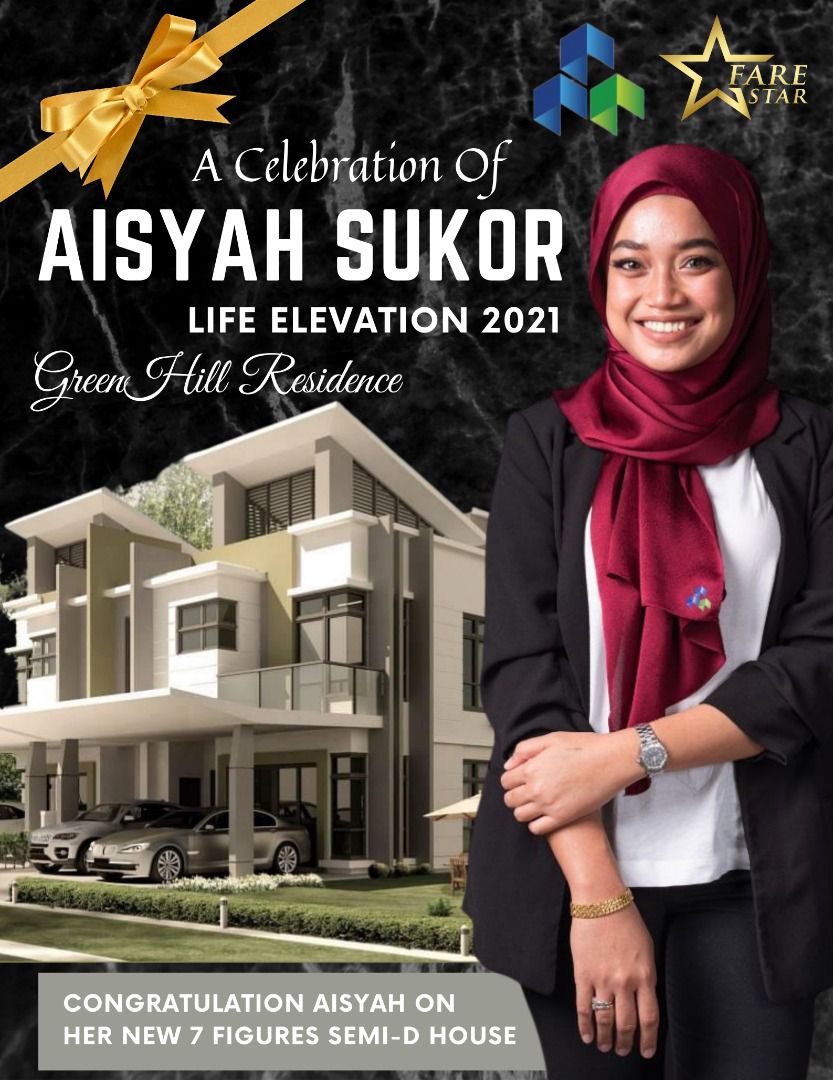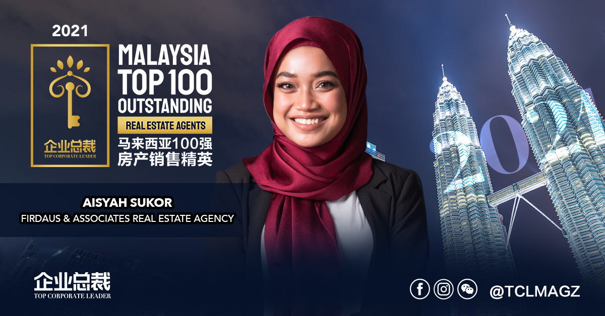 Aisyah Sukor has great PR skill and are able to think quickly to solve problems for owners and buyers, make her succeed in real estate industry. She also believes that with relentless hard work and right attitude, she will ably achieve greater goal. And now, she made it and become one of the Malaysia Top 100 Outstanding Real Estate Agent 2021.