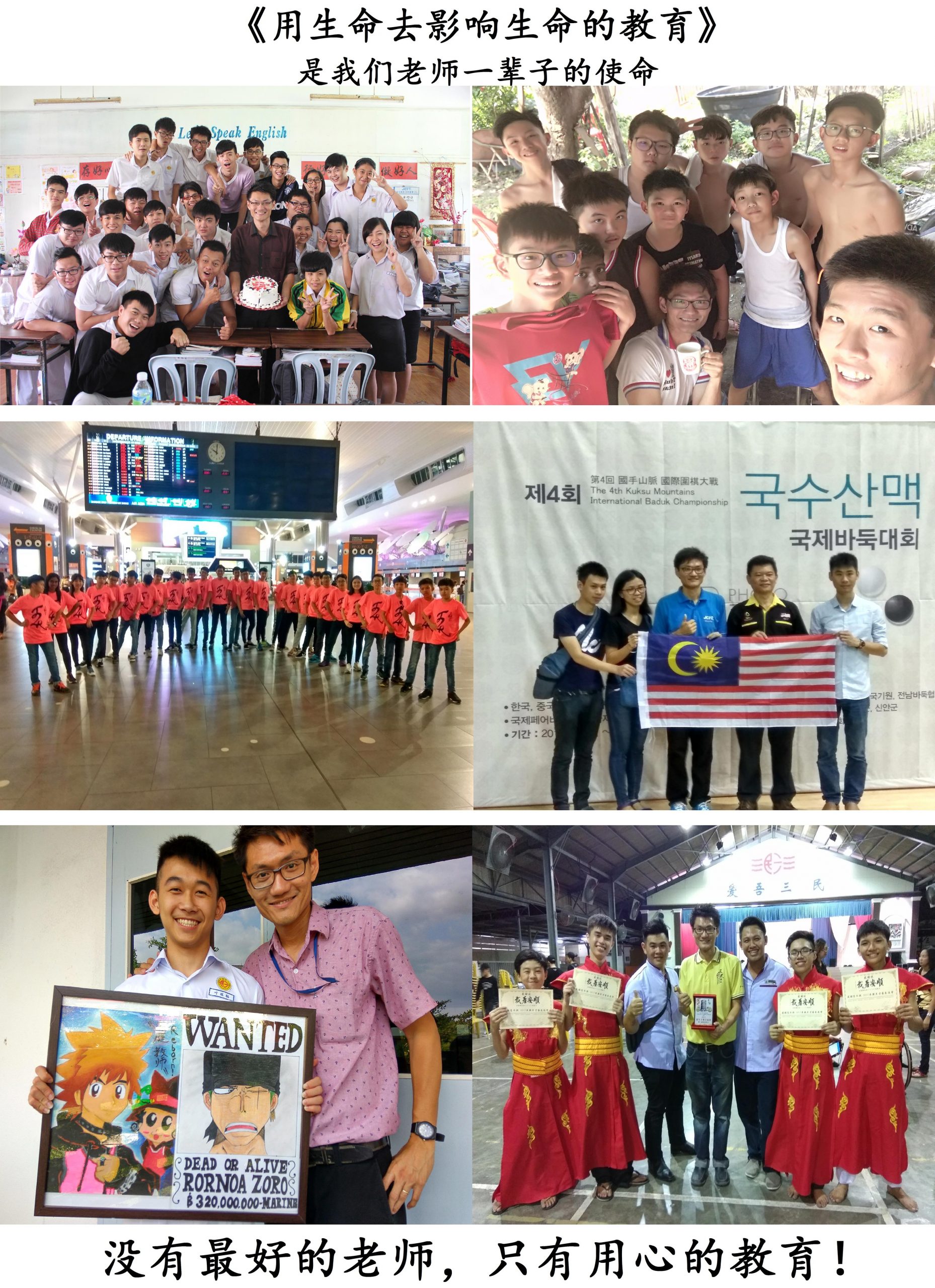 我,曾是个老师。在马来西亚三民华文独立中学担任了7年的老师。非常感恩当年吴明宾校长(现任吉隆坡尊孔独中校长)的提携,让我开始与学校教育结缘。同时,也非常感恩现任的胡永铭校长的带领,让我和教育的缘份越发根深蒂固。从此,才领悟到用生命去影响生命的教育理念!