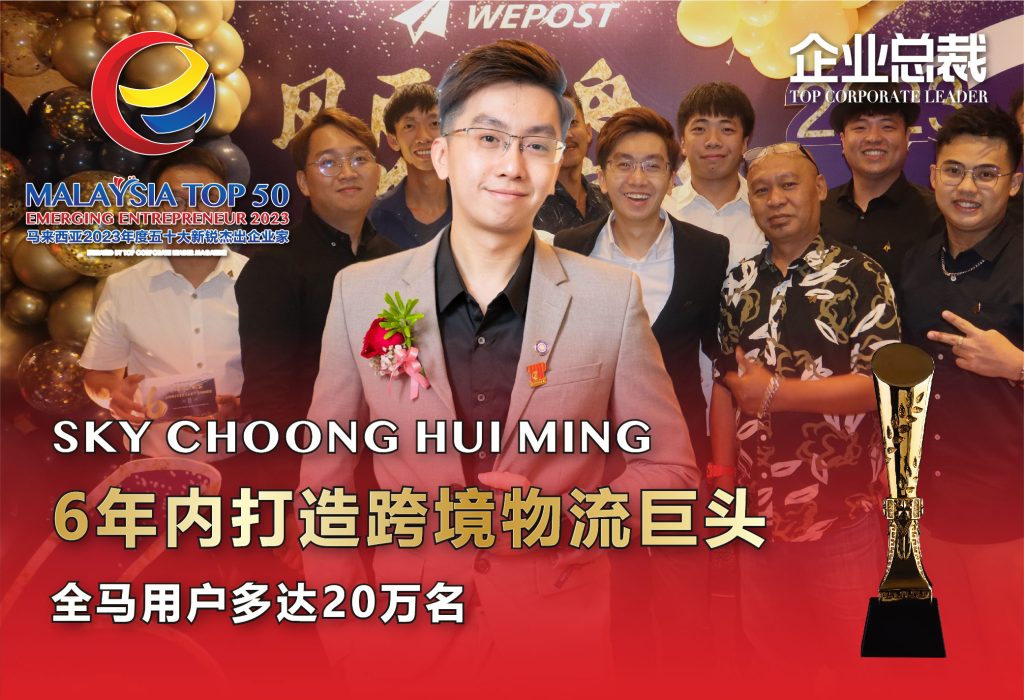 Sky Choong,IT背景的企业家,毕业后创立了WePost Sdn Bhd,一家马来西亚跨境物流企业,由一支庞大90后团队运营,旨在打造马来西亚与新加坡最专业的集运公司,其独特之处在于强大的IT背景和自家研发的专业系统。在Sky Choong的卓越领导下,WePost六年内实现了从仓储到空运、海运,再到清关和快递派送的全方位物流解决方案。至今,公司已累积200,000会员,升级优惠WePostPro更成功吸引了超过1,000名注册会员,业务遍布吉隆坡、柔佛新山、马六甲、霹雳怡保等地。