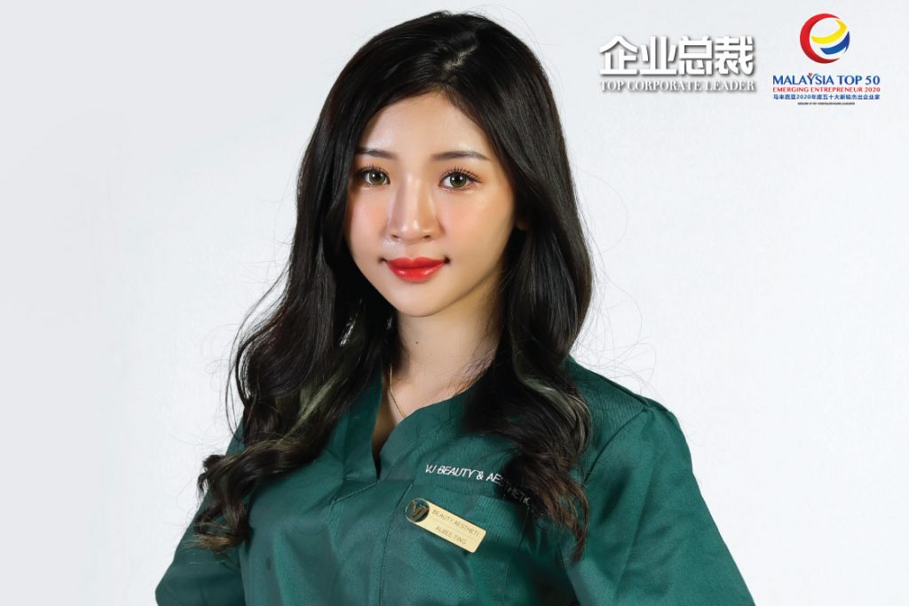 Albee本身拥有数年的微商经验,是一名卓越领导人,自三年前因着想发展个人事业,同时对微整行业深感兴趣,她决心把握商机。 Albee微商团队瓦解后,她开始投资自己上了许多微整相关课程,通过临床的学习,考取许多证照,慢慢蜕变成为一个合格合法的微整形从业医师。帮助每一位女性找回自信与魅力是Albee的使命,她仅用了一年半时间就成立了VJ Beauty Aesthetic,实现人生第一家微整形实体店面,同时是全马首家以团队式经营的微整形企业。三年间Albee都把最专业的技术带给顾客,最专业的知识带给学员。经过多年的努力,Albee凭着精湛的技术和丰富经验获得IMAA国际医学美容总会高度认可,获颁马来西亚微整形政府认证文凭。